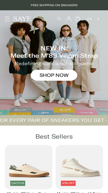 65%SAYE we design sustainable sneakers and ecological clothing made with bio-based and recycled materials, restoring forests and supporting communities.