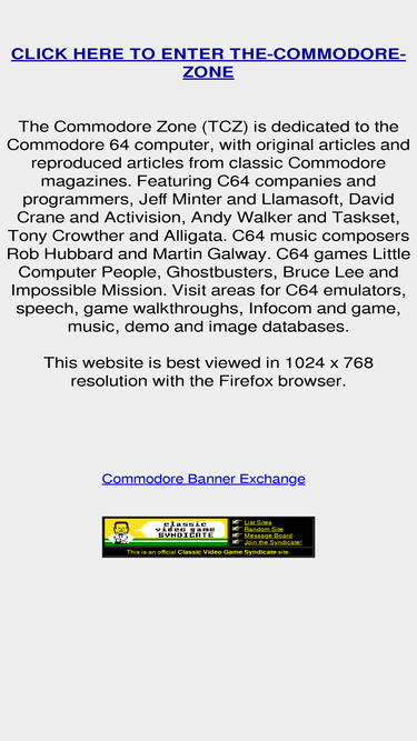 100%the commodore zone for the commodore 64 computer, c64 games, emulators, game, music, demo, image and review databases, speech, articles on jeff minter, llamasoft, david crane, activision, little computer people and taskset. visit tcz.