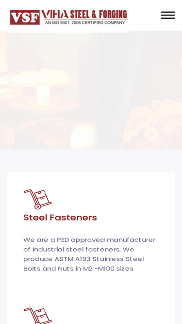 85%viha steel & forging is a member of fmai. a ped approved steel nut bolt manufacturer in mumbai. we produce high strength steel forgings, flanges, threaded rod, hex bolt, studs and screws.