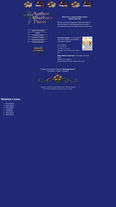 99%True Crime writer Barbara Davis, author of Stalked: A True Story, Suffer the Little Children, and Precious Angels. After the publication of Precious Angels Barbara was presented with evidence that has caused her, out of moral integrity, to recant the material published in her book. Since that time Barbara has done everything within her power to assist in bringing justice to Devon, Damon and Darlie Routier.