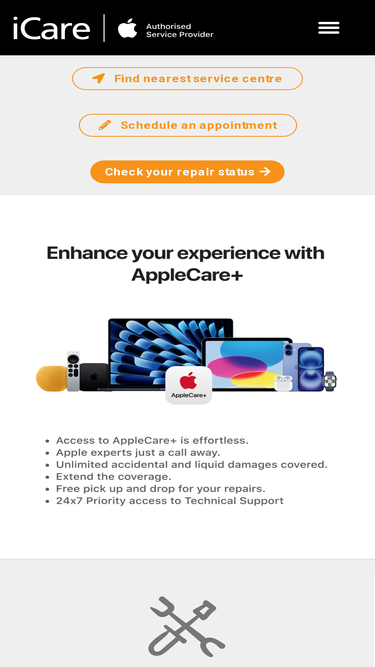 68%Find your Service Centre 20 centres open 6 days a week. Pop in and experience the latest iPhone, iPad, Mac & Apple Watch with a wide range of great accessories Find nearest service centre Schedule an appointment Phone support +91 080 46999888 Repair support support@icareservice.co.in Careers at iCare If you’re looking for a rewarding environment... View Article