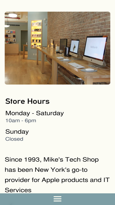 92%Since 1993, Mike's Tech Shop has been New York's go-to provider for Apple products and IT Services. Make an appointment today! Apple products like custom Macs are for sale at this shop, which offers upgrades & IT services too.