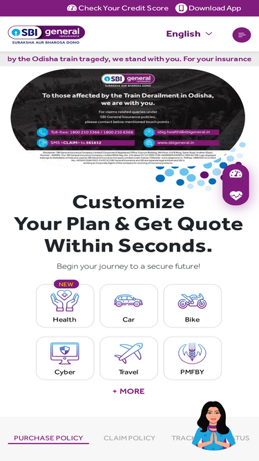82%As a leading general insurance company in India, SBI General offers easy buy/renew options for health, car, bike, home, travel & cyber policies. Visit now!