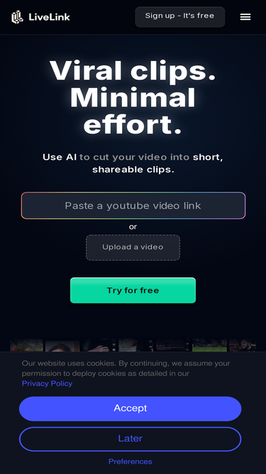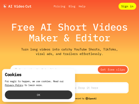 72%Transform lengthy videos into viral YouTube Shorts, TikToks, or ads effortlessly using AI Video Cut. Repurpose with ease and captivate your audience!