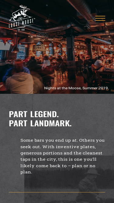 86%AND YOU THOUGHT MOOSE WERE ELUSIVE. VISIT 146 Front Street West, Toronto, ON CALL 416-977-8840 HOURS Monday - Tuesday 11:30am - 12am Wednesday - Thursday 11:30am - 1am Friday - Saturday 11:30am - 2am Sunday 11:30am - 12am GENERAL INQUIRIES loosemoose@sircorp.com EVENT & GROUP BOOKINGS FOLLOW