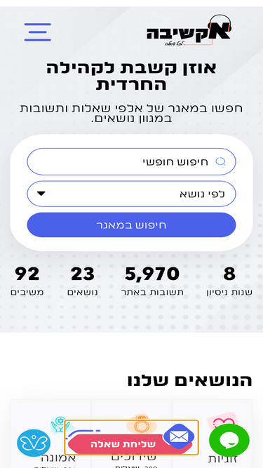 88%פרויקט אקשיבה הינו פרויקט התנדבותי ששם לו למטרה לספק מענה על מגוון שאלות על חיים. אקשיבה: שאלות ותשובות למגזר החרדי. היכנסו עכשיו לאתר לעוד פרטים. >>