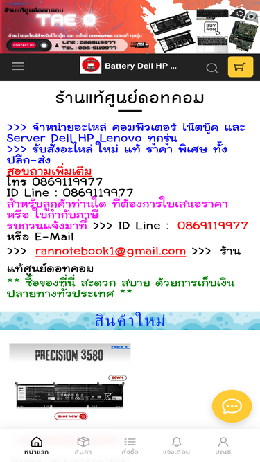 77%Battery Dell Adapter Dell PowerSupply Dell อะไหล่โน๊ตบุ๊ค แบตเตอรี่โน๊ตบุ๊ค จอ สายแพ เมนบอร์ด บอดี้ กรอบโน๊ตบุ๊ค พัดลม หัวชาร์จ Dell ของแท้ ส่งฟรี ส่งไว ช้อปปิ้งออนไลน์
