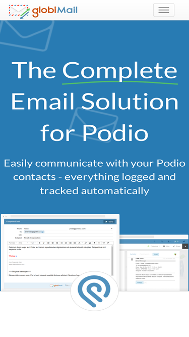 92%The easiest way to communicate with your Podio contacts using regular Email.