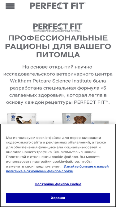 82%Профессиональные корма PERFECT FIT™ — полный ассортимент кормов на официальном сайте бренда ПЕРФЕКТ ФИТ™. Читайте статьи о кошках и собаках, узнайте о производителе на сайте Perfectfit.ru.