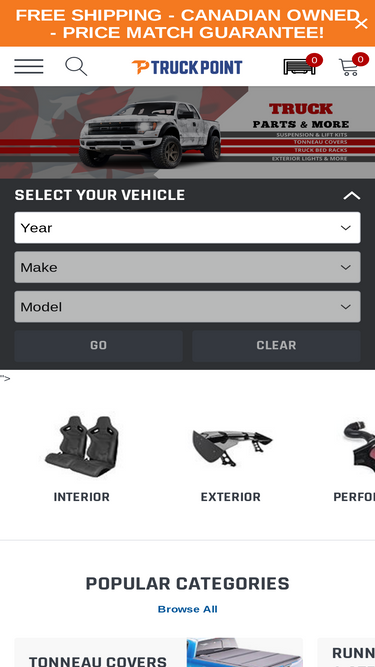 100%check out partsengine.ca's huge selection of exterior, interior, towing, jeep, truck & auto accessories, we specialize in tonneau covers fender flares, bull bars, side steps, bug deflectors, window visors, billet grilles, led light bars and more many. we offers free shipping to anywhere in canada, and discounts on top brands like u-guard, extang, bak, tonno pro, westin, bushwacker, gorhino, n-fab and more!
