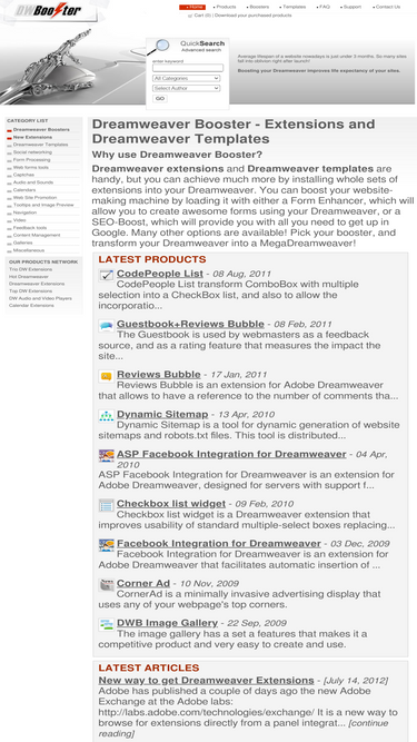 74%dreamweaver boosters, dreamweaver extensions and dreamweaver templates; load your dw with extensions and transform it into a powerful tool for advanced web design.
