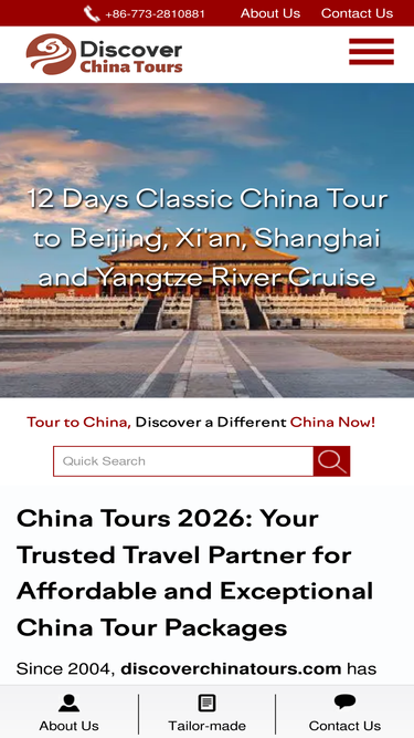 100%Discover China Tours offers Private, Bus, Join-in & Tailor-made China tours. With 300+ tour packages, including Beijing, Shanghai, Guilin & Silk Road tours.