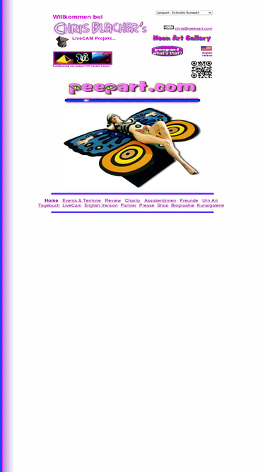 100%chris bleicher's peepart live cam project (www/peepart.com) is a progressive art project which opens via internet a live show to the public through the artist's studio in muenchen, germany.