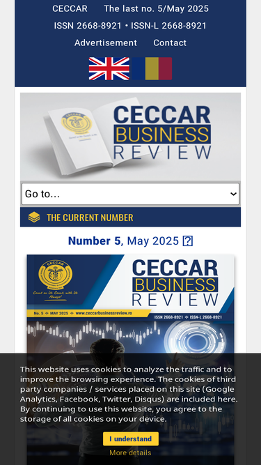 93%The CECCAR BUSINESS REVIEW (CBR) is a monthly international peer-reviewed open access journal, in English and Romanian language, which serves as a medium for relevant original research articles, fast communication and high-quality reviews of recent advances in the areas of business science.