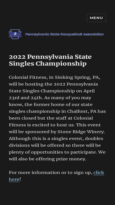 Home of the CVRA, sanctioning body for all indoor racquetball tournaments in Virginia