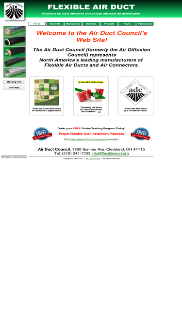 100%Safety, Education and Excellence for the Air Duct Industry. The Air Duct Council (formerly the Air Diffusion Council) represents North America's leading manufacturers of Flexible Air Ducts and Air Connectors.