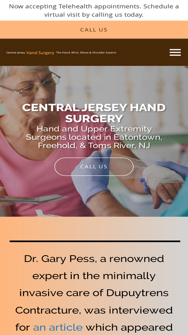 92%now providing telehealth visits - book online today! trusted hand and upper extremity surgeons serving eatontown, freehold, & toms river, nj. visit our website to book an appointment online: central jersey hand surgery