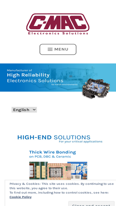 100%Explore C-MAC’s electronic manufacturing services, offering advanced solutions like PCB assembly (PCBA), Ceramic Circuits, Thick Film Printing, Box Build, wire bonding, and custom innovations for automotive, aerospace, medtech, and industrial Electronic Manufacturing Services.