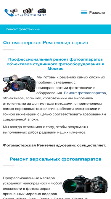 ремонт фотоаппаратов, объективов, фототехники мы выполняем отточенными за долгие годы методами, с применением самых передовых технологий ☎ +7 (925) 518 54 93