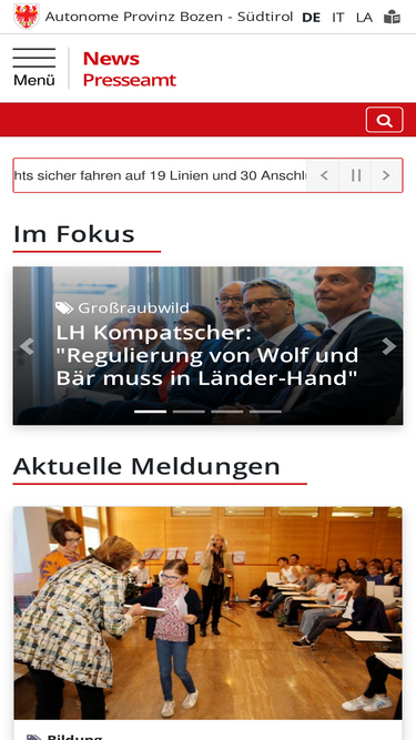 96%Pressemitteilungen aus Landesregierung und Landesverwaltung - Landespresseagentur (LPA) - Autonome Provinz Bozen - Südtirol
