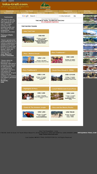 85%find the most complete information about the inca trail trek to machu picchu and other aventure treks in peru : photos galley inca trail, salcantay, choquequirao itineraries and peru tours, available dates, useful information, inca trail park regulations and all peru aventure information want do you need