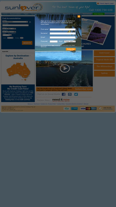 99%book australia holiday accommodation with sunlover holidays. book last minute deals on hotels & apartments around australia including brisbane, sydney, melbourne, perth and all of queensland such as cairns, hamilton island, sunshine coast, brisbane amp; the gold coast. secure online bookings with sunlover holidays.