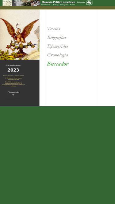73%inehrm.gob.mxOs 5 principais concorrentes de novembro 2025 são: memoriapoliticademexico.org, bicentenario.gob.mx, porfiriodiazycreelman.wordpress.com, biografiasyvidas.com e muito mais.
