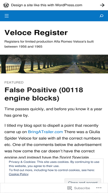 Registers for limited production Alfa Romeo Veloce's built between 1956 and 1965