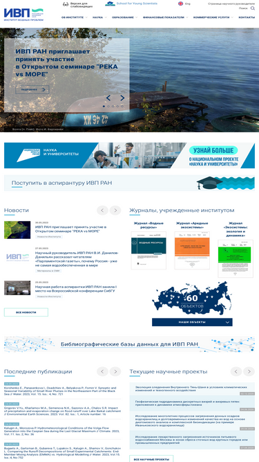 100%институт водных проблем российской академии наук создан 24 ноября 1967 г. распоряжением совета министров ссср и постановлением президиума ан ссср.
