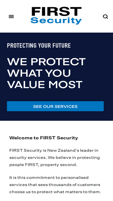 85%welcome to first security first security is new zealand’s leader in security services. we believe in protecting people first, property second.