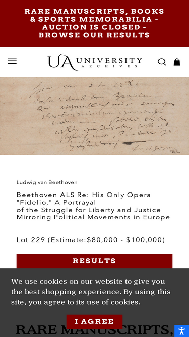 88%University Archives is one of the most trusted sources of authentic autographs in the industry. Our monthly auctions offer collectors and institutions the opportunity to acquire outstanding manuscripts, rare books, relics, space collectibles, and sports memorabilia!