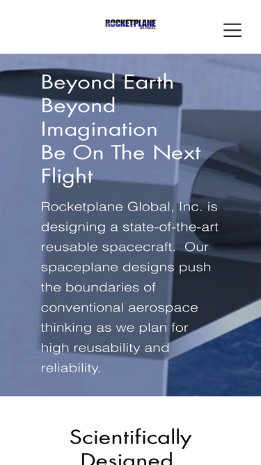 100%Rocketplane Global, Inc. is designing a state-of-the-art reusable spacecraft. Our spaceplane designs push the boundaries of conventional aerospace thinking as we plan for high reusability and reliability.