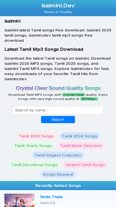 79%isaiminisong.comOs 5 principais concorrentes de janeiro 2026 são: tamilbeat.com, eelammp3.com, friendstamilmp3.in, isaimini.dev e muito mais.