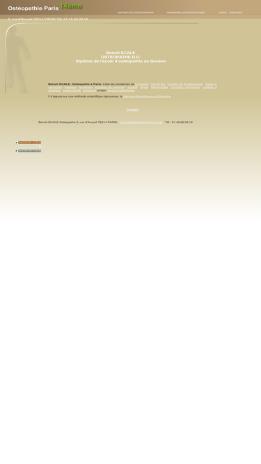 100%ost�opathe � paris beno�t ecale pratique la technique de l'�tiopathie pour traiter de nombreuses pathologies, douleurs (migraine, mal de dos, tendinite, stress, sciatique, spasmophilie...)