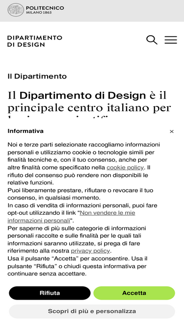 79%Il Dipartimento di Design è il principale centro italiano per la ricerca scientifica nell’ambito del design; radicato nella cultura italiana del progetto è orientato a esplorare nuove frontiere disciplinari, mettendo il design al servizio delle sfide della contemporaneità.