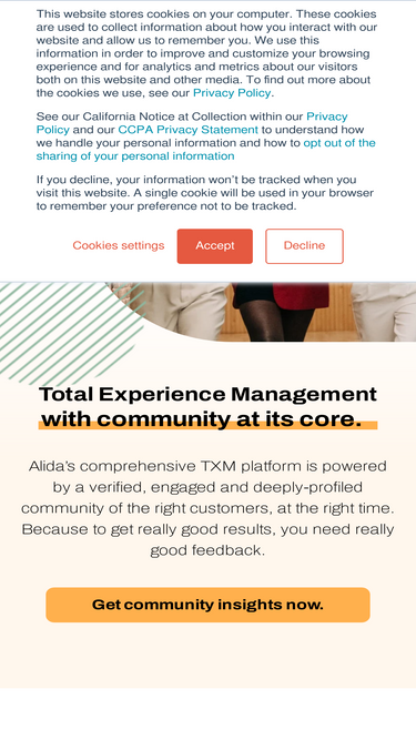 Here we detail the privacy policy when you are on our website. Any questions can be redirected to info@alida.com.