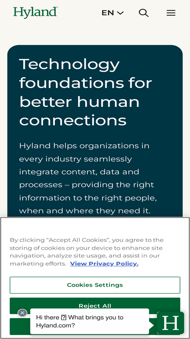 94%Hyland provides enterprise content services and management to organizations across the globe. Learn about our company, software products and career opportunities.