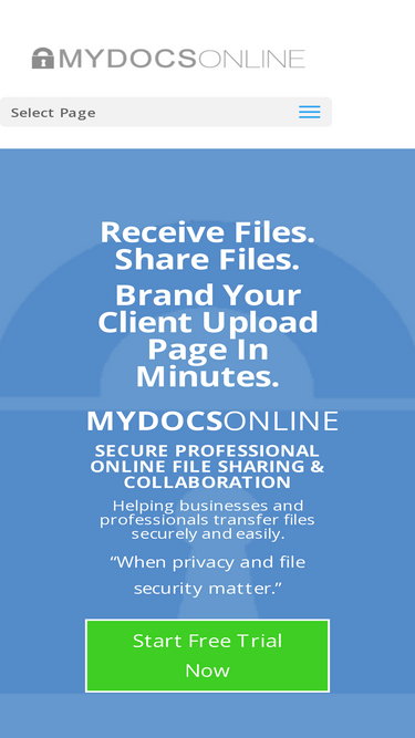 88%Secure File Transfer and Web-Based Workroom for Accountants. MYDOCSONLINE is secure and easy to use. Perfect for tax season. Get true File Locking for Quickbook files with Desktop App. Free 15-Day Trial. No credit card required. Free professional branding. TLS and HTTPS