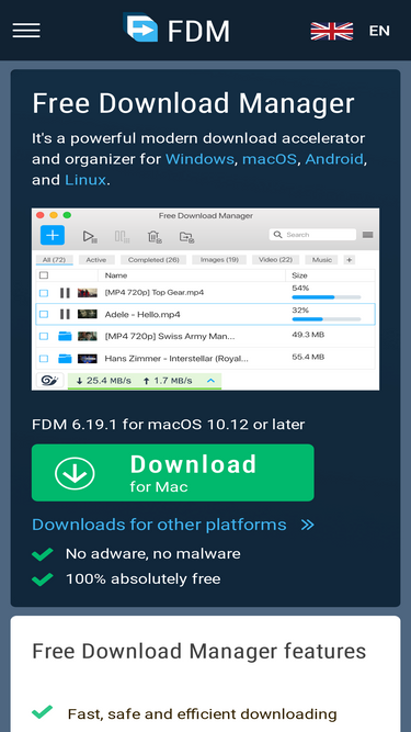 99%internet download manager (idm) is a tool to increase download speeds by up to 10 times, resume or schedule downloads and download streaming videos