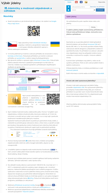 98%jídelní lístky škol a školek s možností odhlášky a výběru.