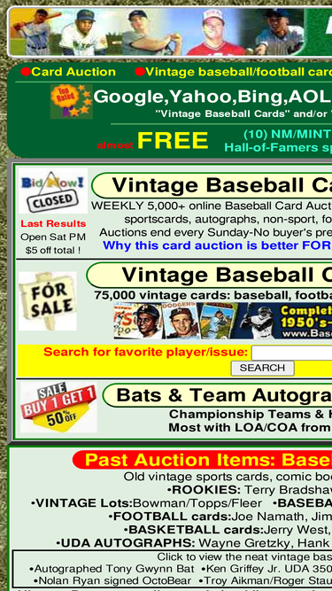 79%Home of the weekly vintage card auction with over 8,000 baseball,football,basketball & non-sports cards
