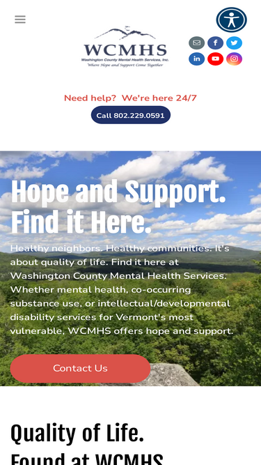 80%wcmhs is designated by vermont statute to provide a wide variety of support and treatment opportunities for children, adolescents, families, and adults living with the challenges of mental illness, emotional and behavioral issues, substance use disorder, and developmental disabilities. we are available 24/7/365 days.