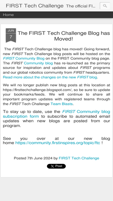 100%The official blog of the FIRST Tech Challenge - a STEM robotics programs for students grades 7-12.