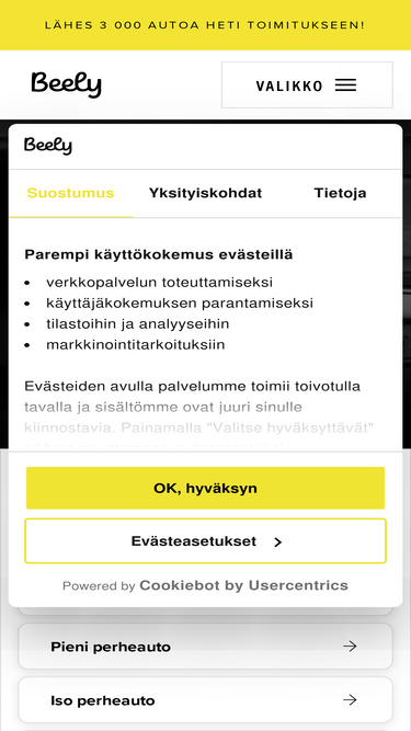 81%Beely on helpompi kuin yksityisleasing! Etsi itsellesi sopivin auto ja tilaa 24/7. Laajasta valikoimasta löydät sopivan auton edulliseen kuukausihintaan.