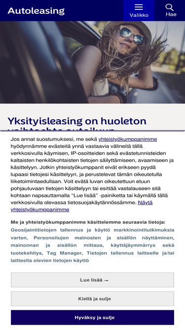 74%Yksityisleasing kiinteällä kuukausihinnalla, sisältäen mm. huollot ja renkaat - ilman huolta auton arvon laskusta! Tutustu autoihin täällä »