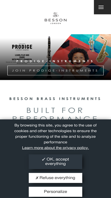 74%Dear Musician, We thank you for choosing Besson. We know your instrument is precious and deserves respect and the best of care. Below are simple instructions regarding your instrument’s use, its maintenance and its guarantee. Please read it carefully and do not hesitate to contact any of our resellers for advice. Contractual Guarantee Granted by Besson 1. All Besson instruments […]