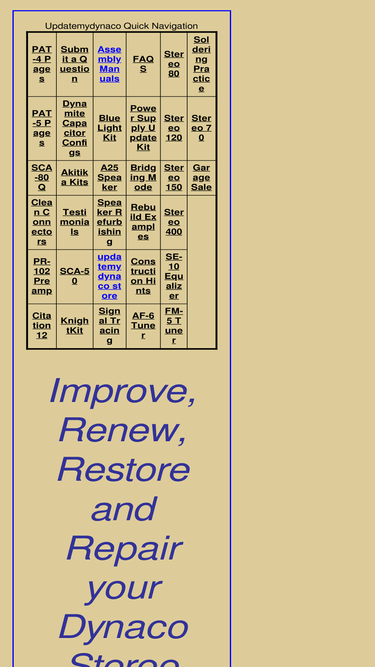 98%updatemydynaco makes audiophile kits that make your dynaco stereo 120 power amp or pat-4 preamp even better than new.