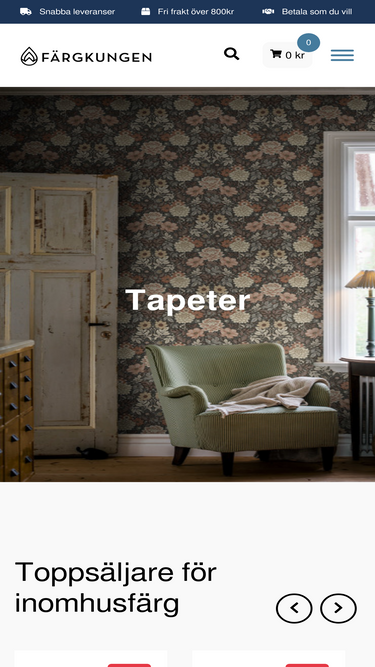 98%På Färgkungen erbjuder vi Vi brinner för inredning och design! - Snabba leveranser - Betala som du vill - Välkommen!