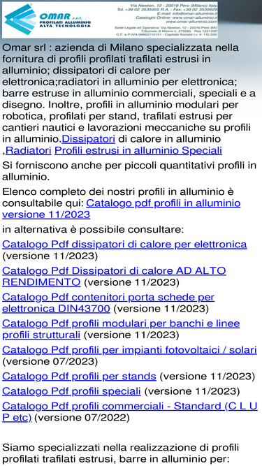 100%omar srl specializzati nella fornitura di profili profilati trafilati estrusi in alluminio; dissipatori di calore per elettronica;radiatori in alluminio per elettronica; barre estruse in alluminio commerciali, speciali e a disegno.