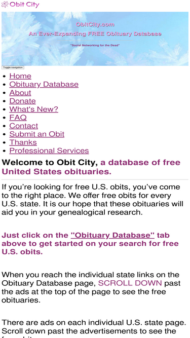 81%obit city is a database of free united states obituaries that covers all 50 states.